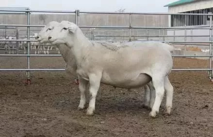 ②體質(zhì)結(jié)實,體格較大。頭大小中等,額稍寬,鼻梁微凸,公羊有角或無角,母羊多無角。頸中等長,體軀寬而深,胸圍較大,后軀發(fā)育良好,肉用體型比較明顯。四肢粗壯。尾肥大。