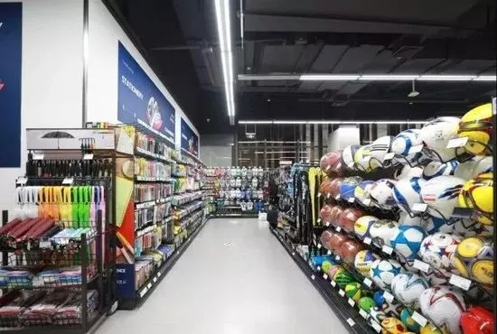 2、精選商品。按大潤發大賣場的“二八規律”(20%的商品銷售占比80%),“盒小馬”首先剔除掉了大賣場的家電、家紡、服裝等動銷慢、低頻的商品,上述八大品類根據大賣場數據精選排名靠前的TOP商品。同時,會引入阿里的大數據、算法及大潤發全國的400多家門店的商品庫按需精選商品。比如,蘇州首店引入了體育用品并陳設了專區。