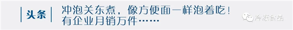 此外,火鍋料休閑化的產(chǎn)物——沖泡關(guān)東煮也火了。什么是沖泡關(guān)東煮,它跟沖泡方便面一個(gè)原理,是在方便酸辣粉的基礎(chǔ)上增加了休閑火鍋料,只需加入熱水,等上幾分鐘就能直接食用。