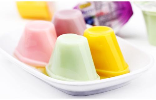 果凍亦稱啫喱,它的外觀晶瑩剔透,口感軟滑,是一種低熱能高膳食纖維的健康食品。果凍的生產原料主要是白糖、卡拉膠、甘露膠、鈣、鈉、鉀鹽等。果凍的膠體是由卡拉膠、甘露膠混糖煮沸后冷卻凝結而成,卡拉膠是海藻類植物,甘露膠是從天南星科植物中抽提出的葡甘聚糖,都是天然植物多糖,兩者皆屬水溶性膳食纖維。