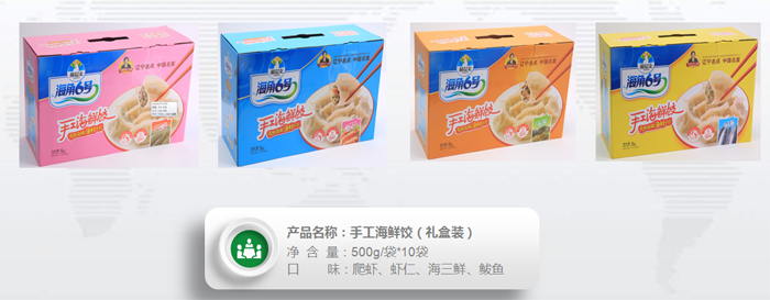 速凍食品包括:速凍海鮮餃子、海鮮餛飩系列產(chǎn)品。深加工海產(chǎn)品包括:貝類、蝦類、魚類、海帶、紫菜等,產(chǎn)品分三個(gè)系列:○1海參、鮑魚類高檔產(chǎn)品;○2貝類、蝦蟹、海帶等綜合加工產(chǎn)品;○3海產(chǎn)品罐頭、調(diào)味品等。產(chǎn)品均采用渤海灣特有的新鮮海鮮為原料,原肉入餡,美味可口,鮮味十足,營(yíng)養(yǎng)豐富!